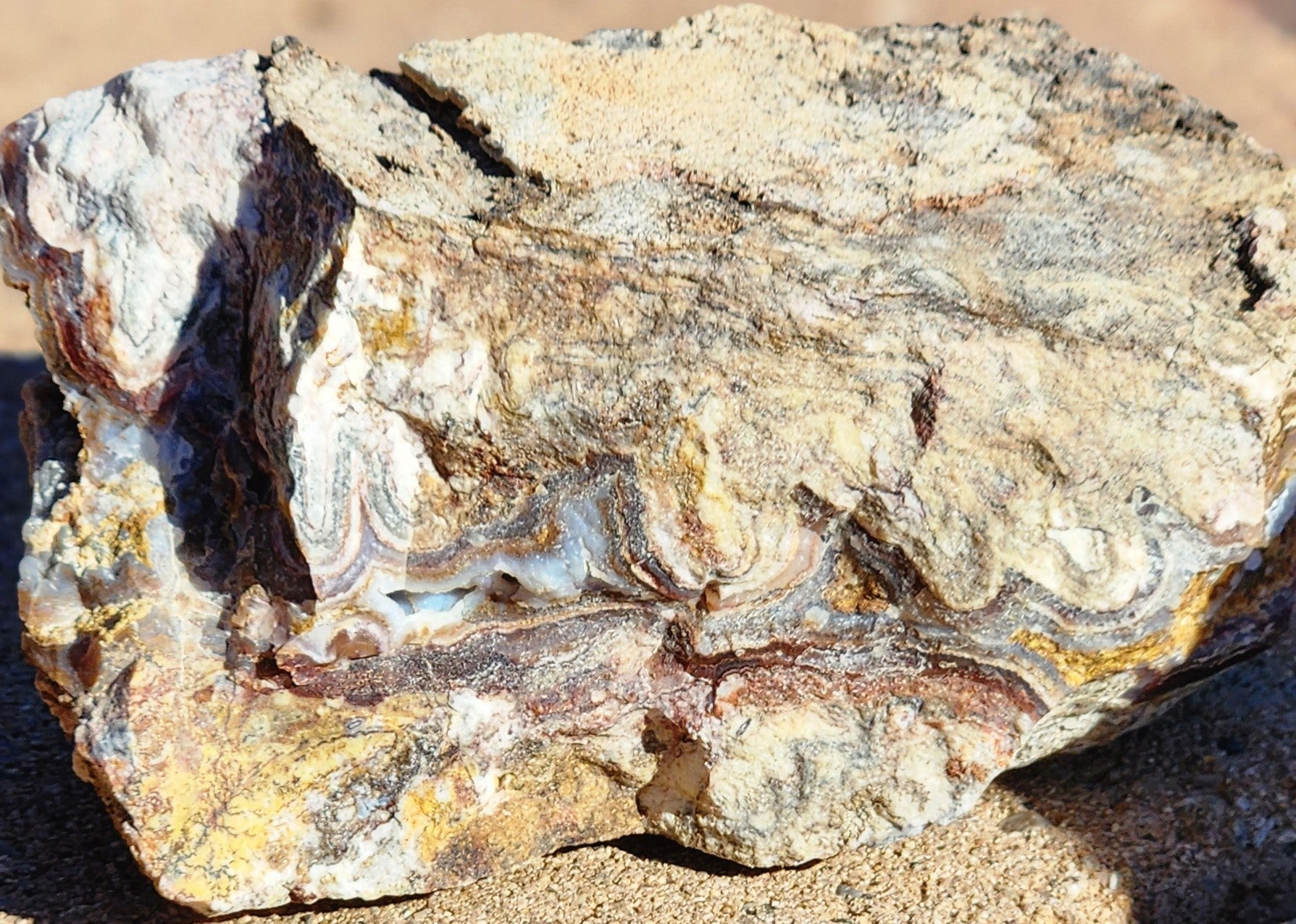 Gran trozo de ágata recolectada de una vena, AZRE Claims, área de Rodeo Flats, Camp Verde AZ