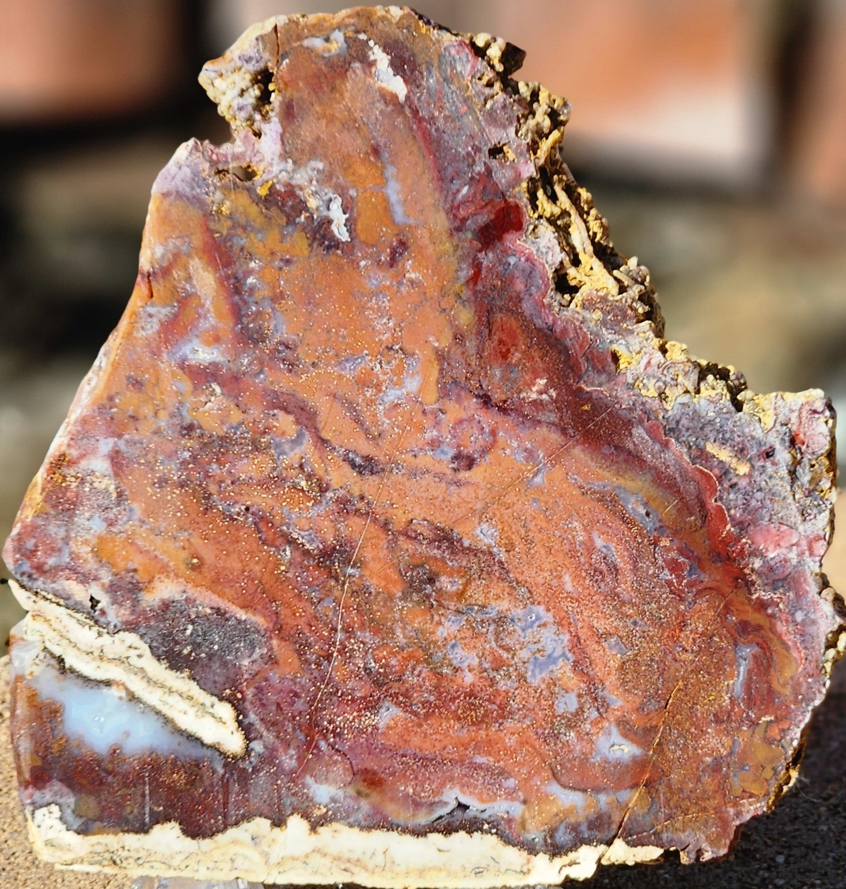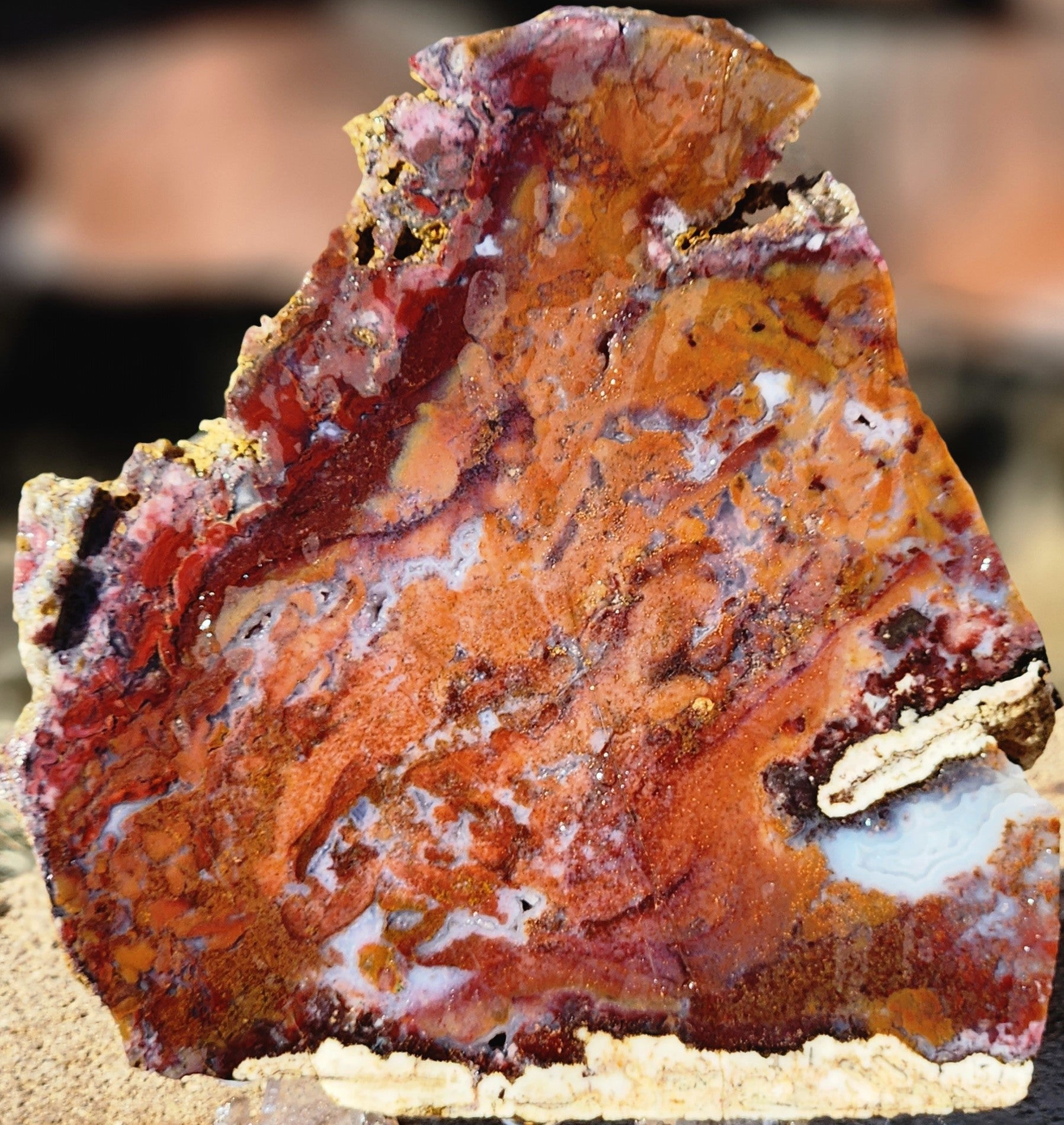 Agate mousse rouge/orange avec inclusions bleues, collectée dans les claims AZRE, région de Rodeo Flats, Camp Verde AZ