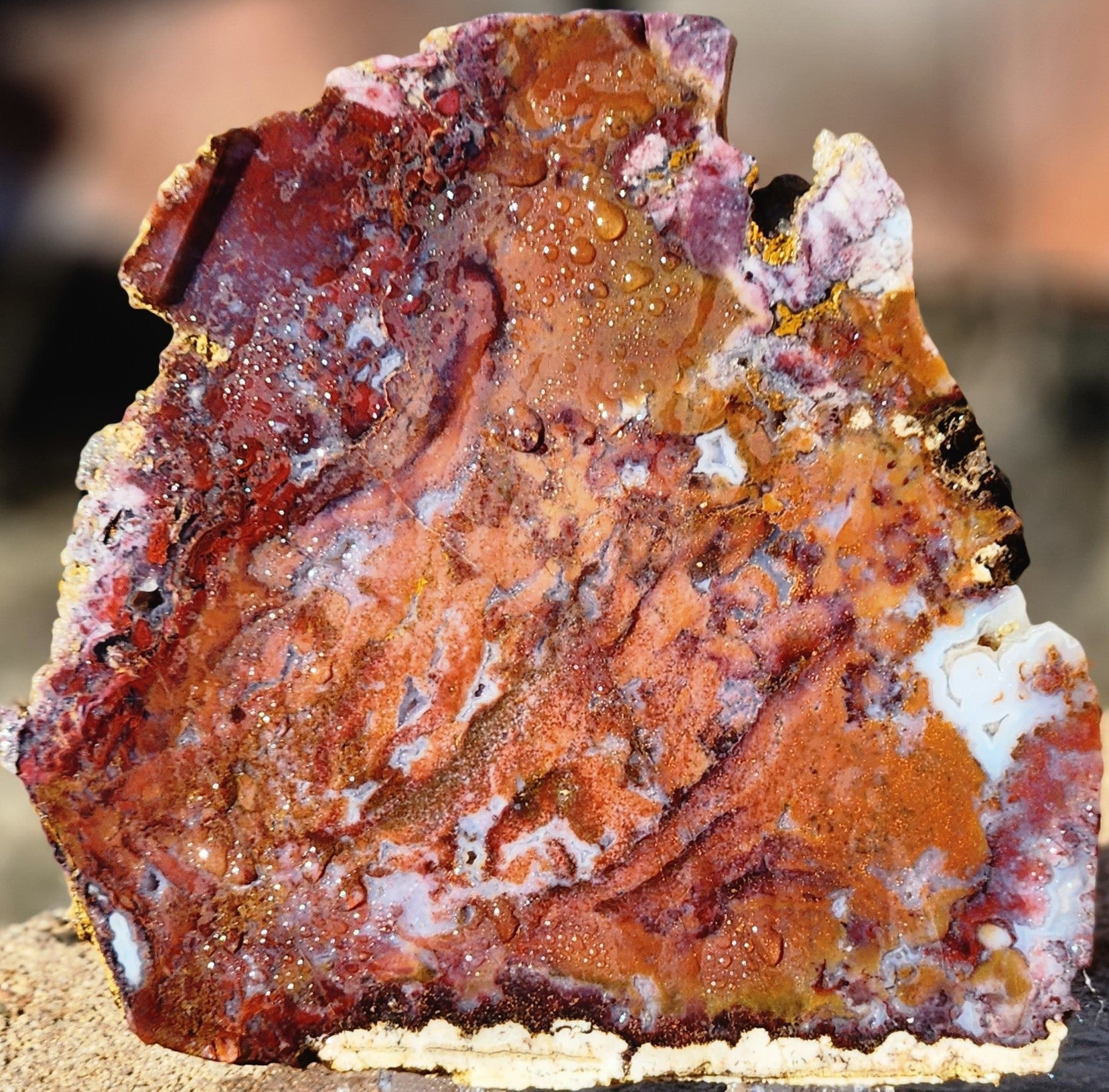 Agate mousse rouge/orange avec inclusions/fortifications bleues, collectée dans les claims AZRE, région de Rodeo Flats, Camp Verde AZ